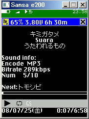 昨日、ブログ書いた後で、SansaをPCにつなげたところ、前に無くなったはずのファイルが、いくつかのゴミ(総使用量1.2GBに対し、1.5GB使ってると主張するファイルとか)とともに蘇った。