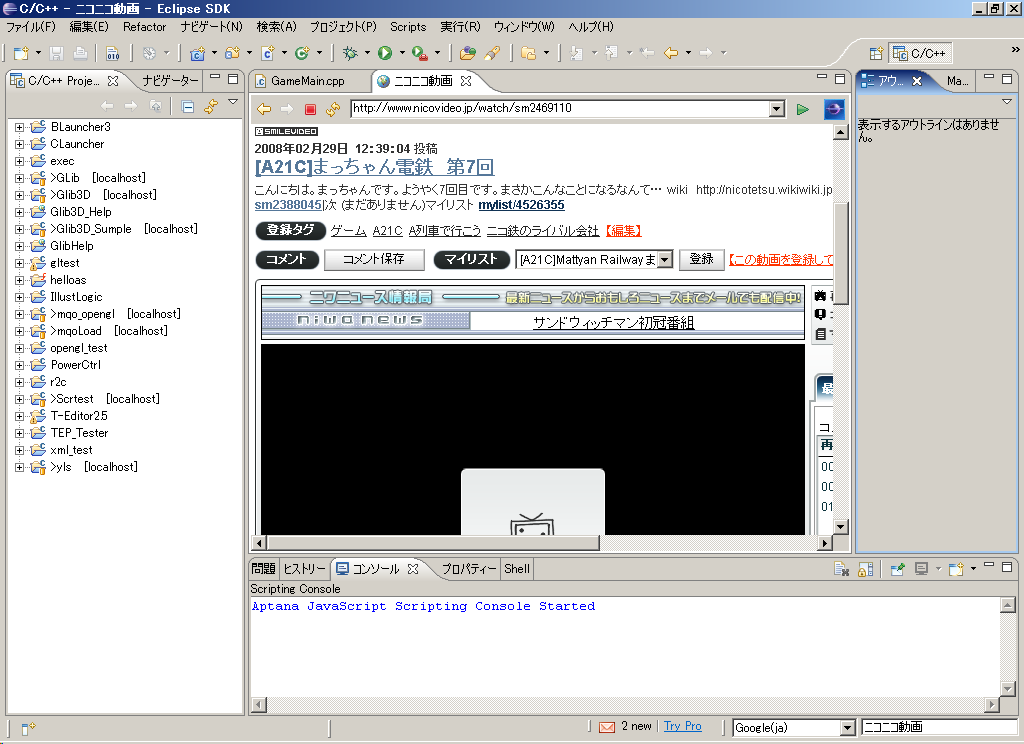 作業用BGMがほしくてニコニコ動画を見ることが多いんだけど、FireFoxとEclipseを同時に動かすと結構重い…